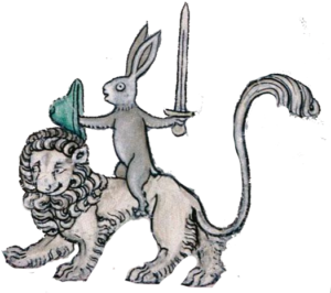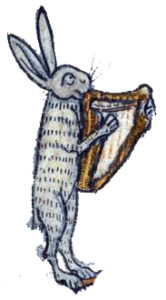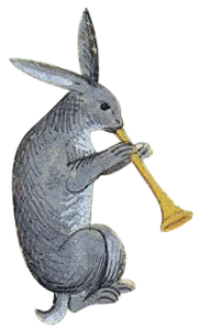 Children and Youth AwardsPeriod marginalia illustration of rabbit playing bugle.